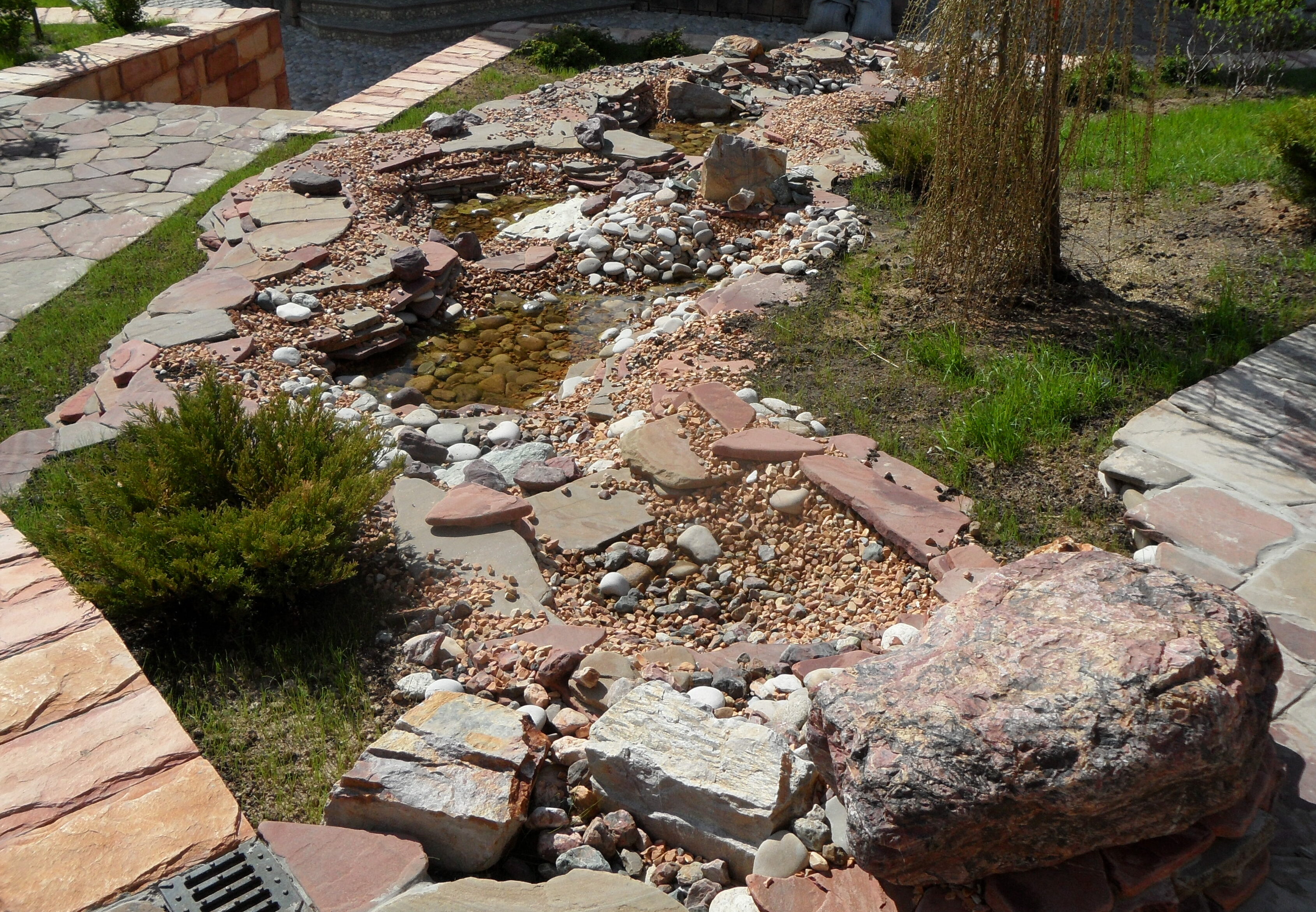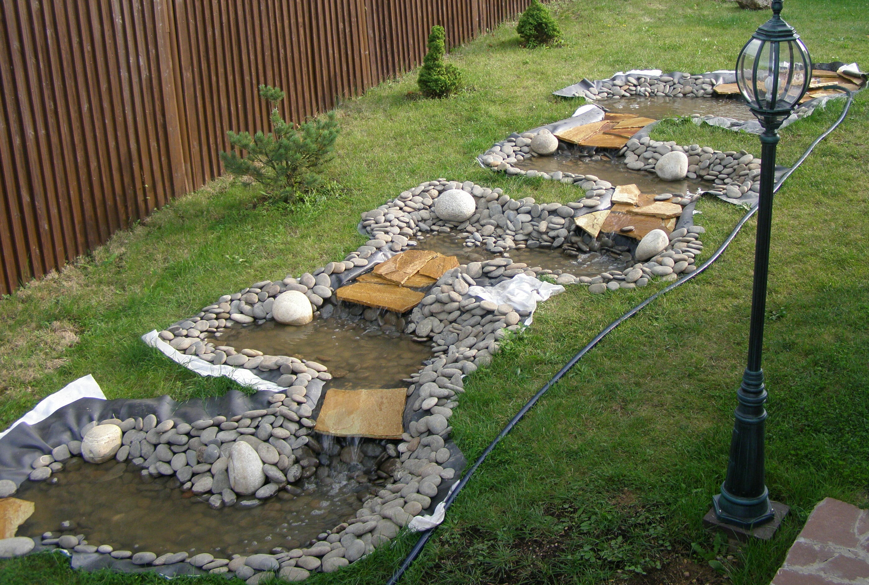 Другое дело — например, надо создать ручей на ровном участке или пустить ручей с нижней точки участка на верхнюю. В этом случае создается искусственное насыпное русло, которое позволяет направить водный поток в нужном направлении.