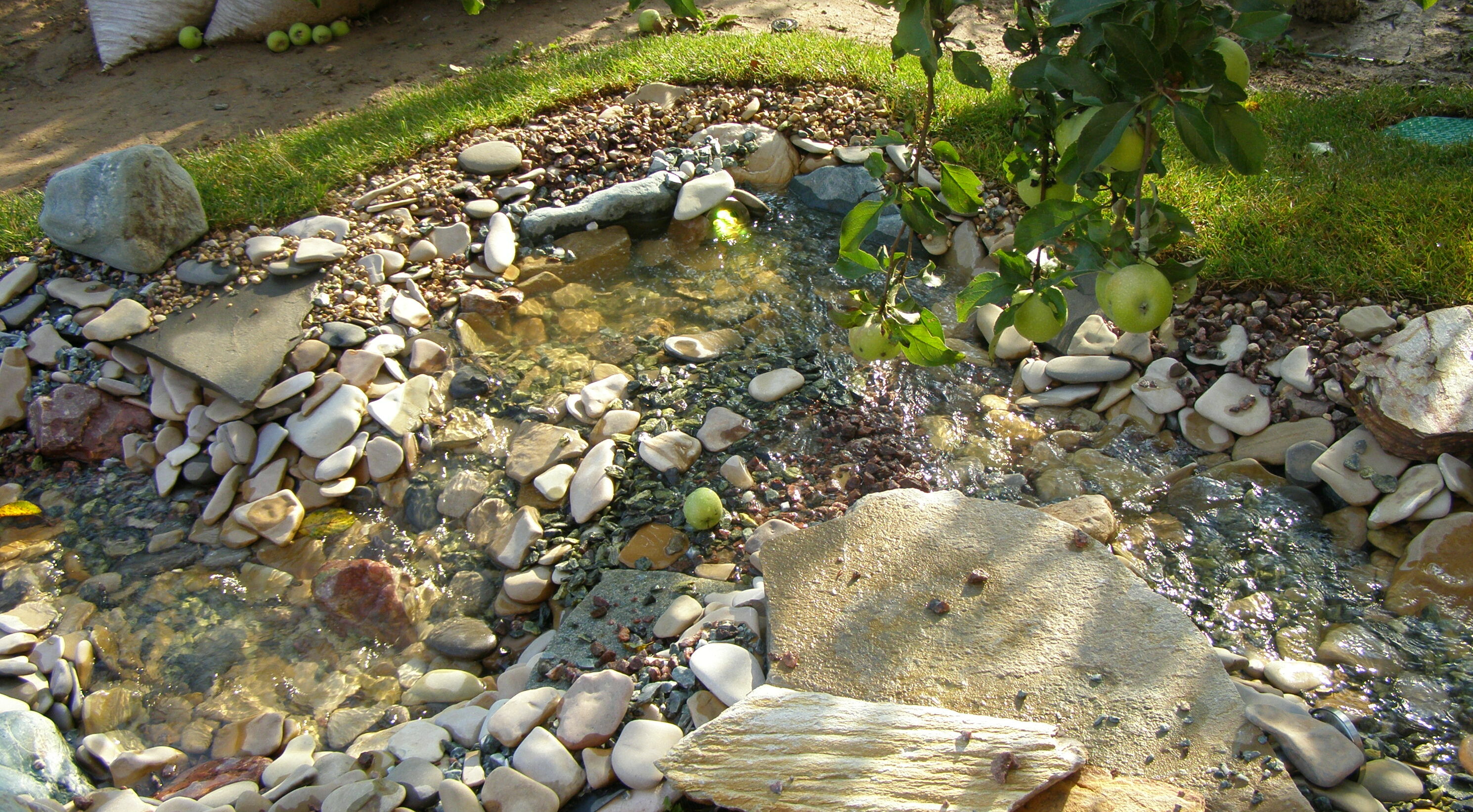 Через некоторое время ручей и пруд наверняка заселят различные водяные насекомые и животные – жуки плавунцы, улитки, лягушки и многие другие представители фауны. Будут прилетать птицы на водопой и кормёжку.