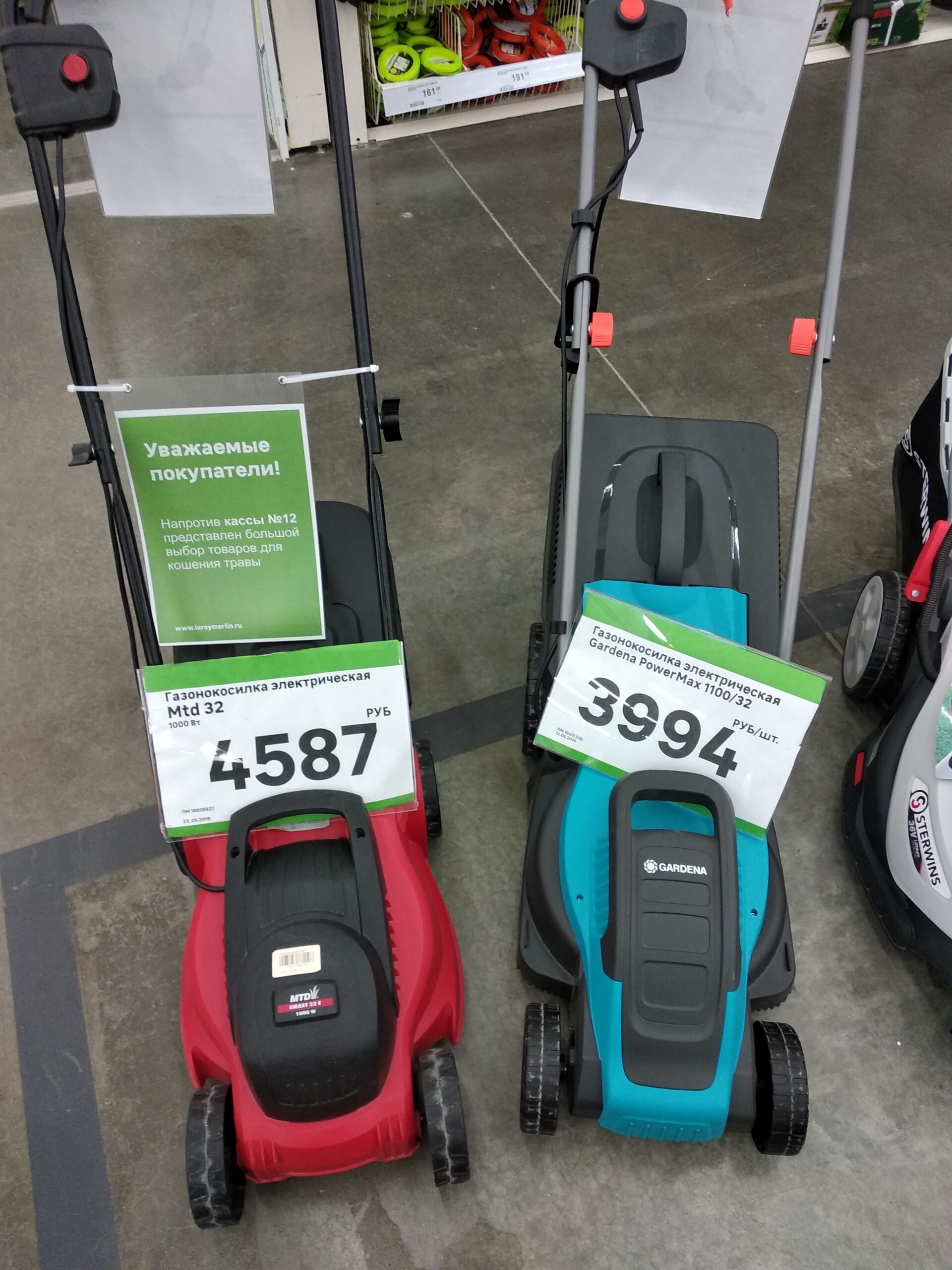 Но зато передние, особенно у больших моделей могут поворачиваться для увеличения маневренности машинок. Ведь масса больших моделей, особенно бензиновых, может достигать десятков килограмм. И повернуть её по траектории кошения с неподвижными передними колёсами бывает сложно. Тем более трудно их и толкать вперёд.