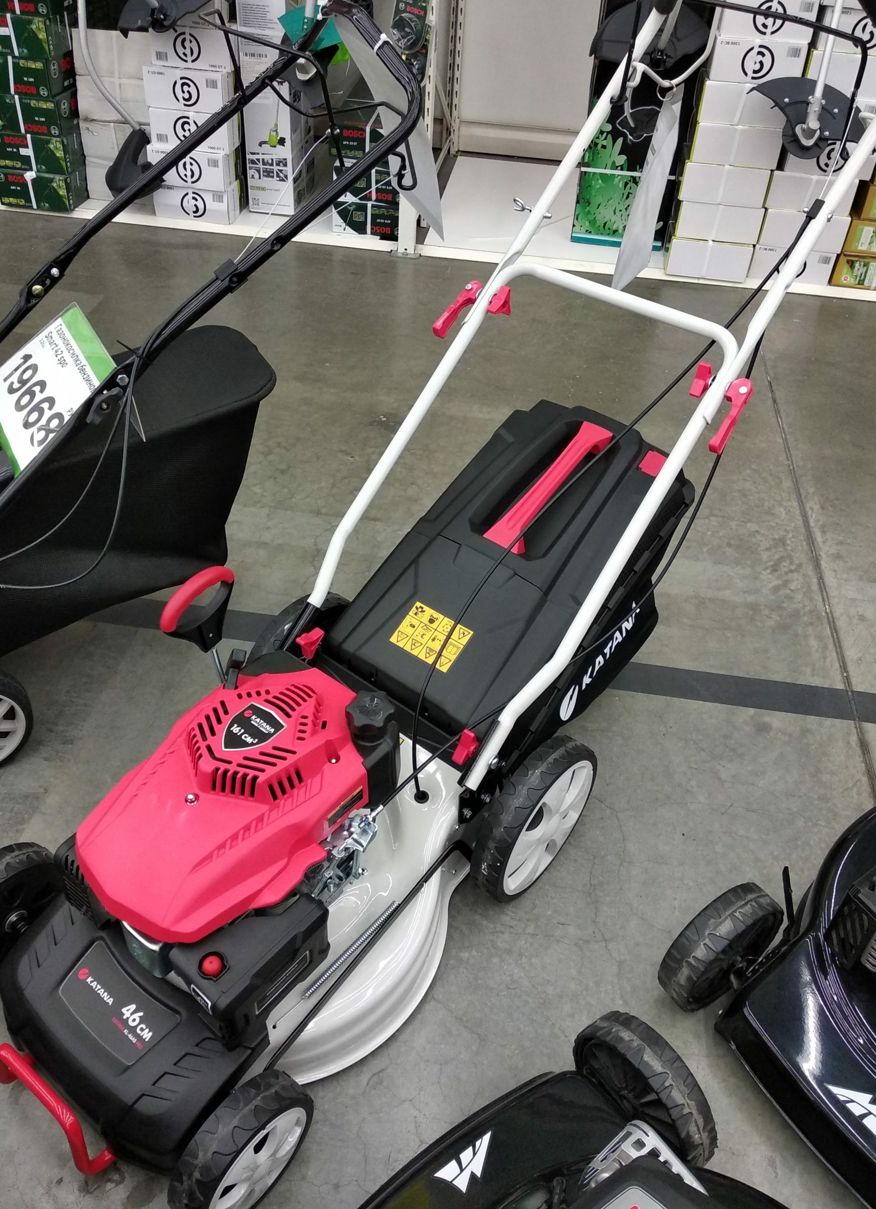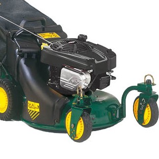Поэтому большие и тяжёлые бензиновые модели практически всегда снабжают активным приводом на задние колёса (бывают и переднеприводные модели). Для этого на ручке управления косилкой ставят несколько рычагов, которые могут менять скорость работы двигателя и соответственно и привода.
