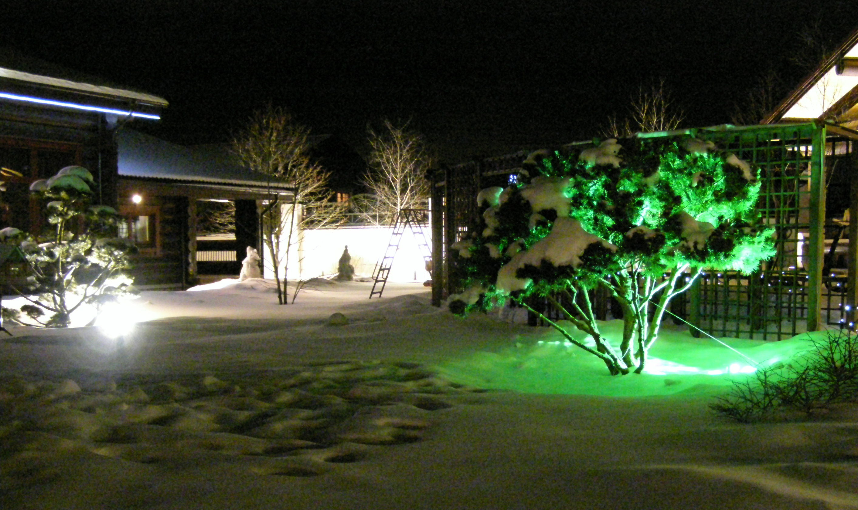 Для подсветки деревьев многие используют гирлянды, которые принципиально схожи с теми, которыми мы украшаем новогодние елки и жилища, но рассчитанные для использования на улице (другая степень защиты). От того, какой эффект вы хотите получить фонари на гирляндах могут быть расположены чаще, или реже. Могут быть больше, меньше, иметь различную форму и светофильтры разных оттенков.
