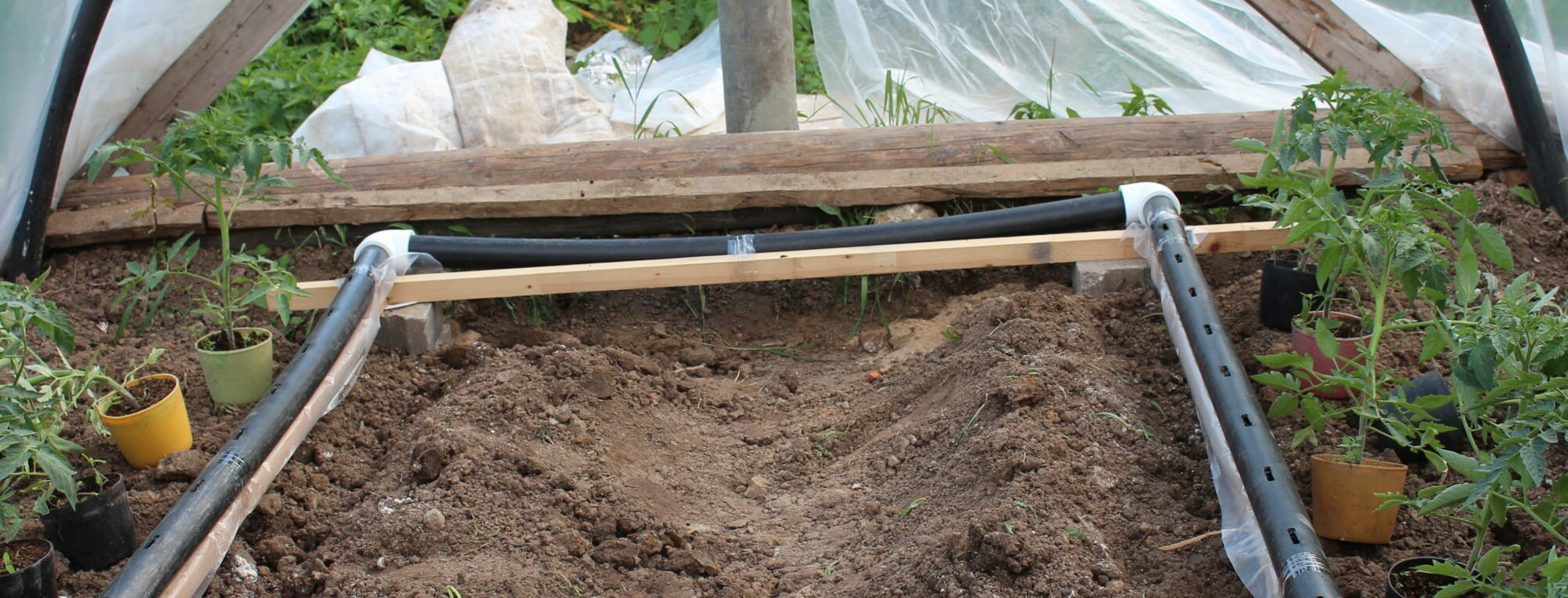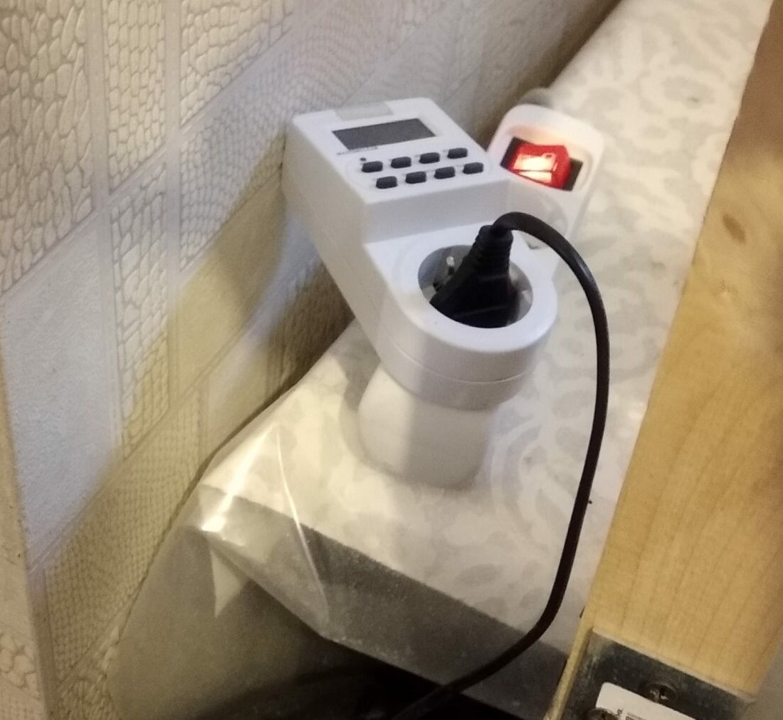 Программируемое реле даёт команду помпе на заполнение трубы раствором и по истечении заданного времени она отключается. Раствор начинает свободно вытекать по фитилям рядом с растениями и таким образом питает корневую систему.