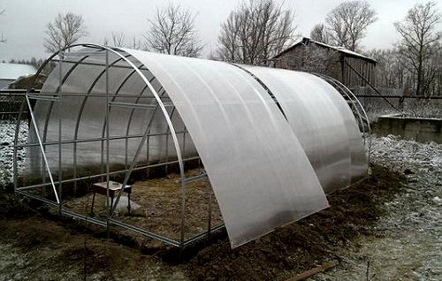Комплектуются они минимальным набором дополнительного оборудования – одна или две маленькие форточки (иногда совмещённые с дверью) и дверь в торце. В комплект входит обычно тонкое покрытие – ПЭ пленка, армированная или сотовый поликарбонат толщиной 4 мм.
