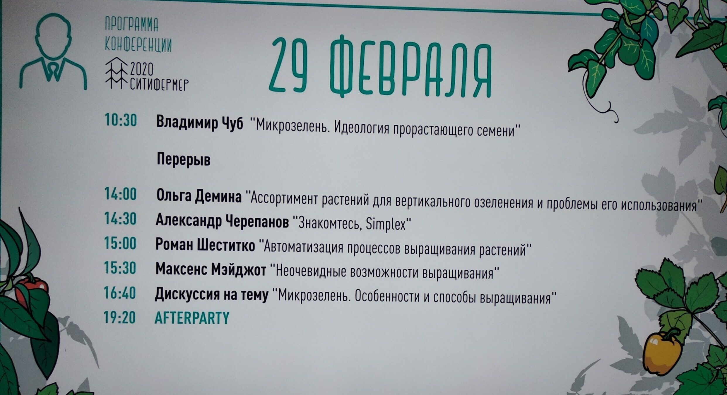 В конце февраля-начале марта в Москве проходила очередная конференция по гидропонике – «Сити Фермер 2020». Это мероприятие для городских фермеров, которое открывает новое направление в выращивании растений методом гидропоники. На конференции были представлены множество докладов от учёных и конечных пользователей.