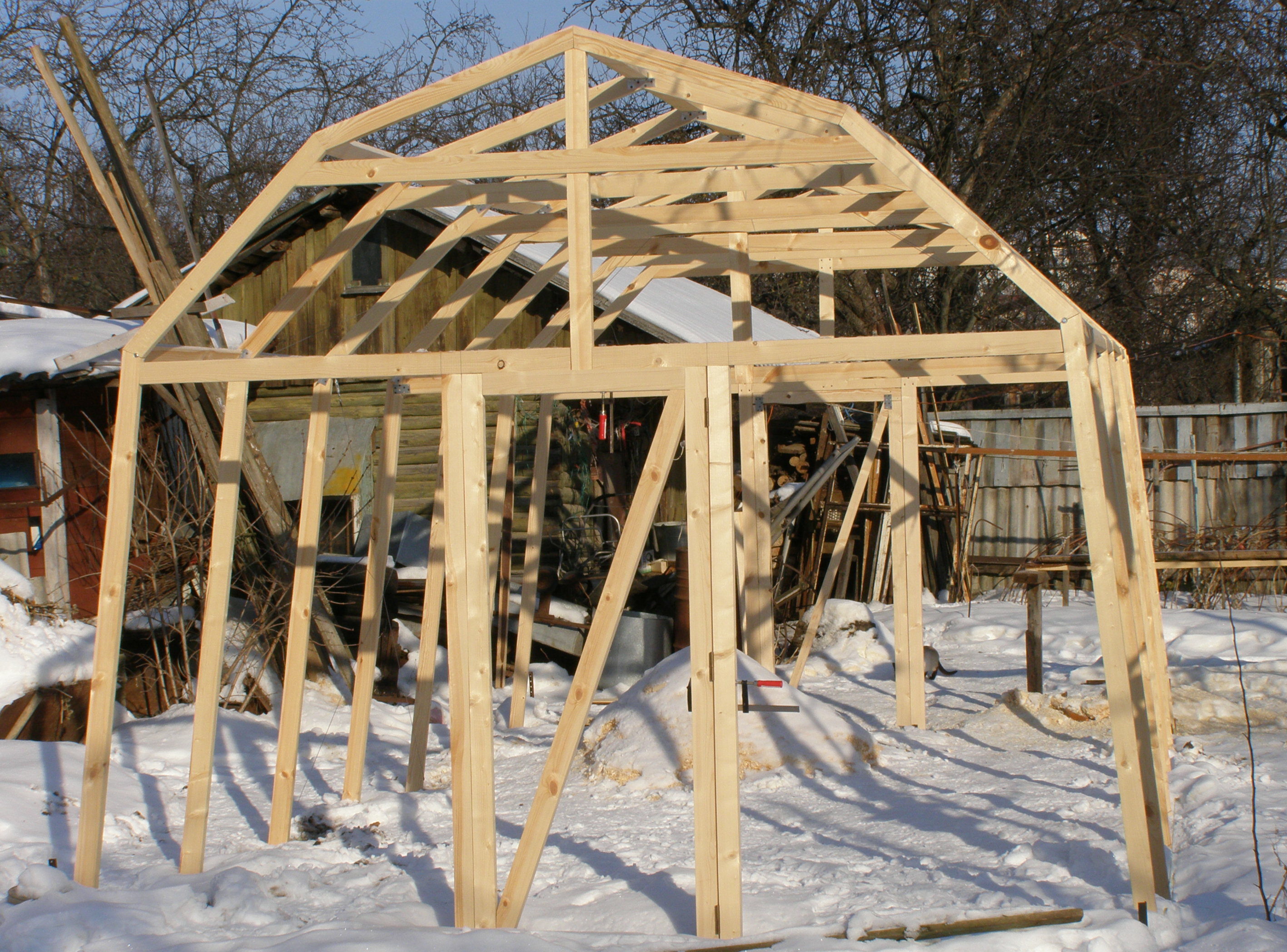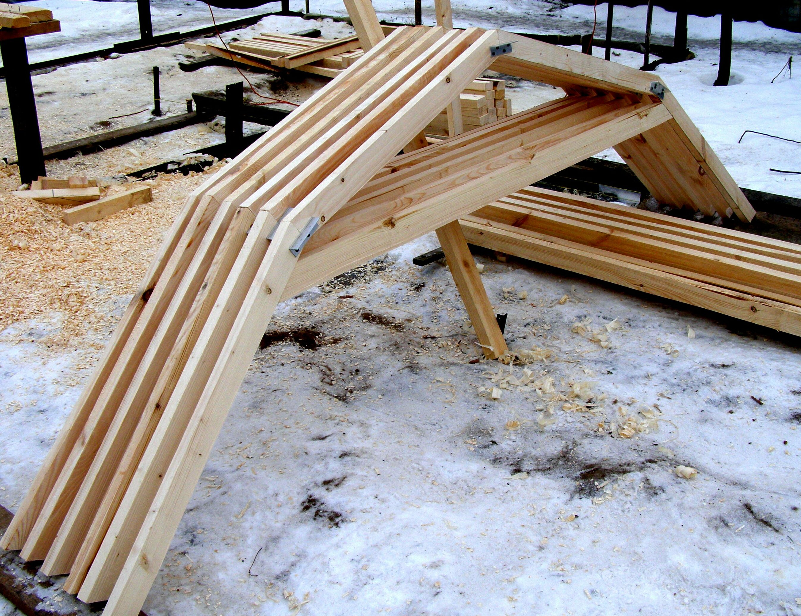 Можно разделить сборку каркаса на два этапа : первый этап – сборка всех верхних элементов арок с затяжками и второй – сопряжение арок со стойками.