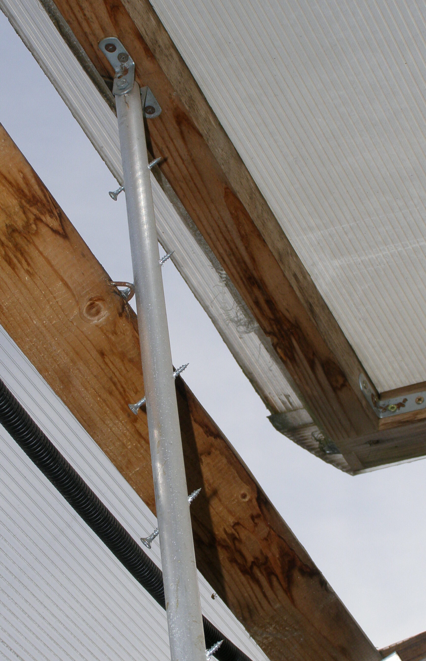 Форточки открываются с помощью вертикальных тяг из алюминиевых труб диаметром 15мм и длиной 2м с закрепленными в них крючками или саморезами через 10см для фиксирования их на форточном проеме. Возможно применение приводов для открывания фрамуг.
