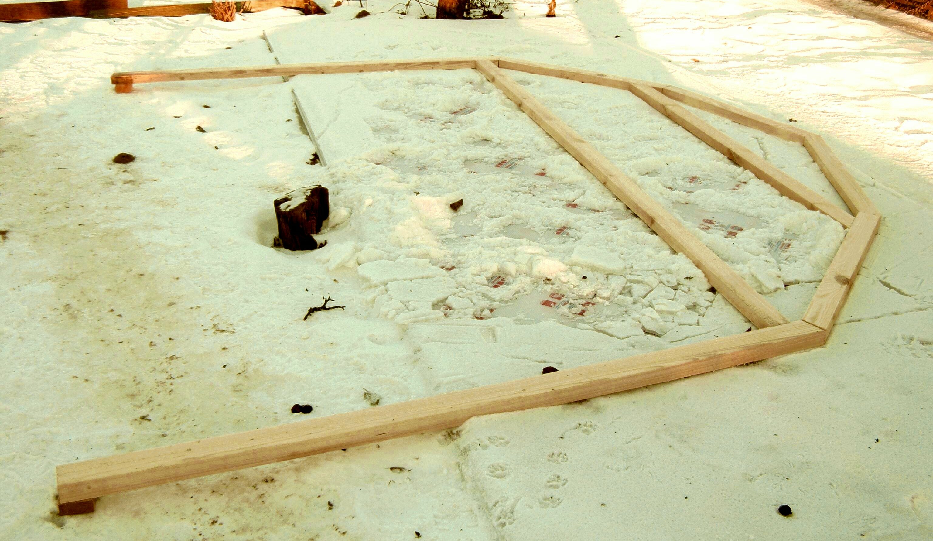 Сборку теплицы стоит начать с изготовления кондуктора на ровной площадке по размерам арок. Подготовка площадки для кондуктора может отнять небольшое время и после этого вы сможете разложить маячные элементы на ровную поверхность – по ним вы будете собирать арки (по факту вам надо собрать на одну арку больше).