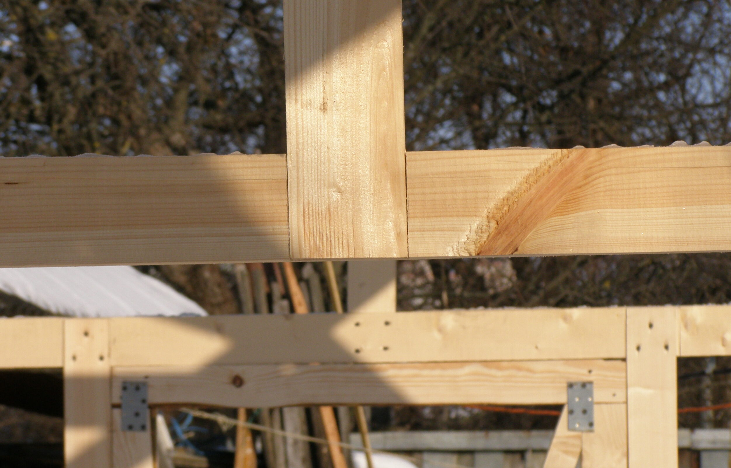 Перевязки элементов арок с затяжками и подвесами а также дверные рамки и форточки можно выполнить упрощенно – «вполдерева» с закреплением саморезами, и при помощи стальных монтажных пластин-накладок с уголками.
