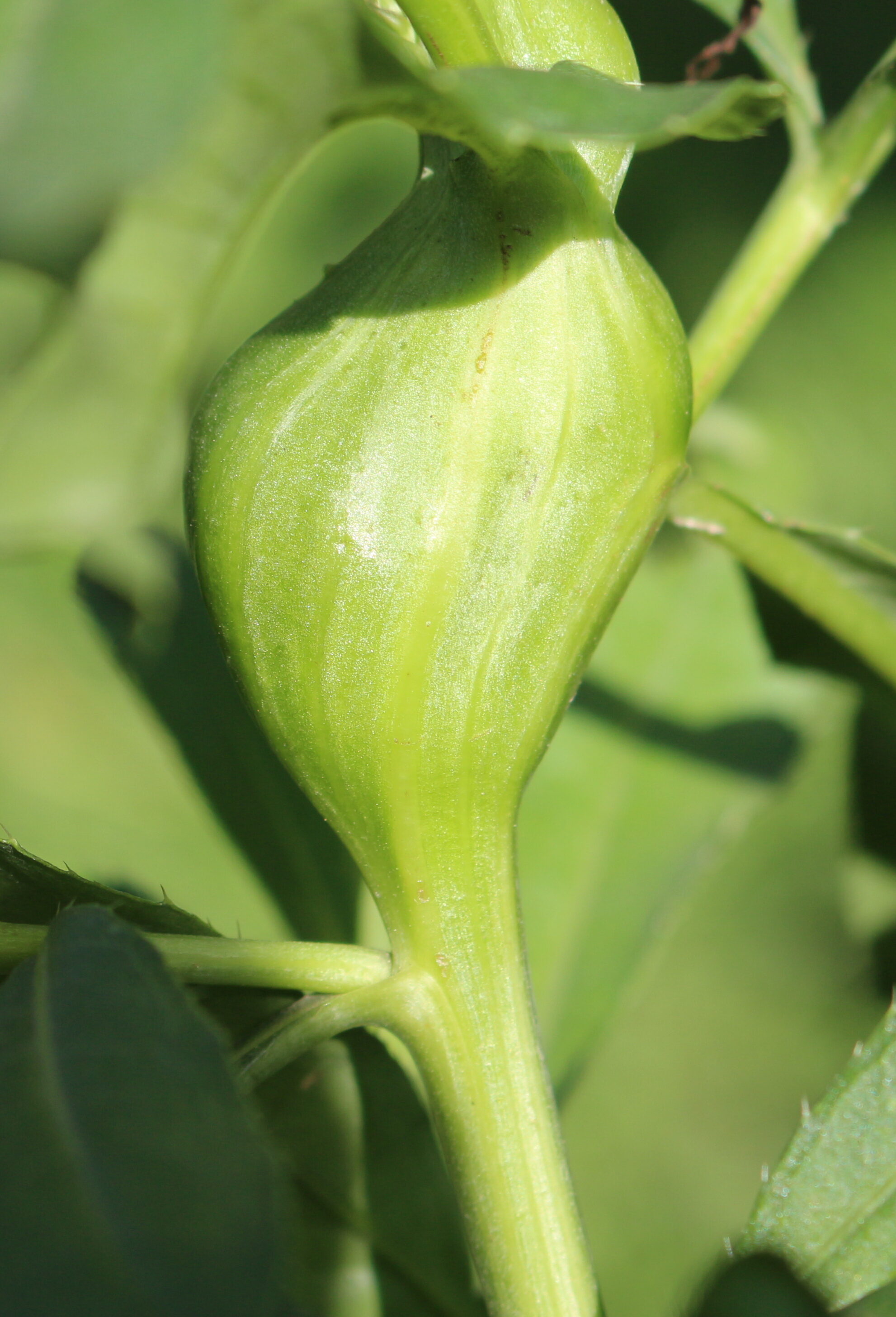 Прошлым летом, ближе к осени, проходя по участку обратил внимание на один сорняк. Увидел на нём посередине стебля утолщение, которого там быть не должно. Растение травянистое с довольно тонким стеблем, но прямостоячее. А здесь такая загадка.