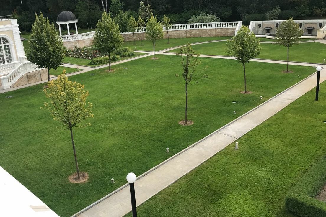 Завершающий этап работ на газоне. Продолжается стрижка газона один раз в неделю на выбранной высоте. Вносятся осенние комплексные удобрения для укрепления корневой системы и подготовки травы для нормальной зимовки.