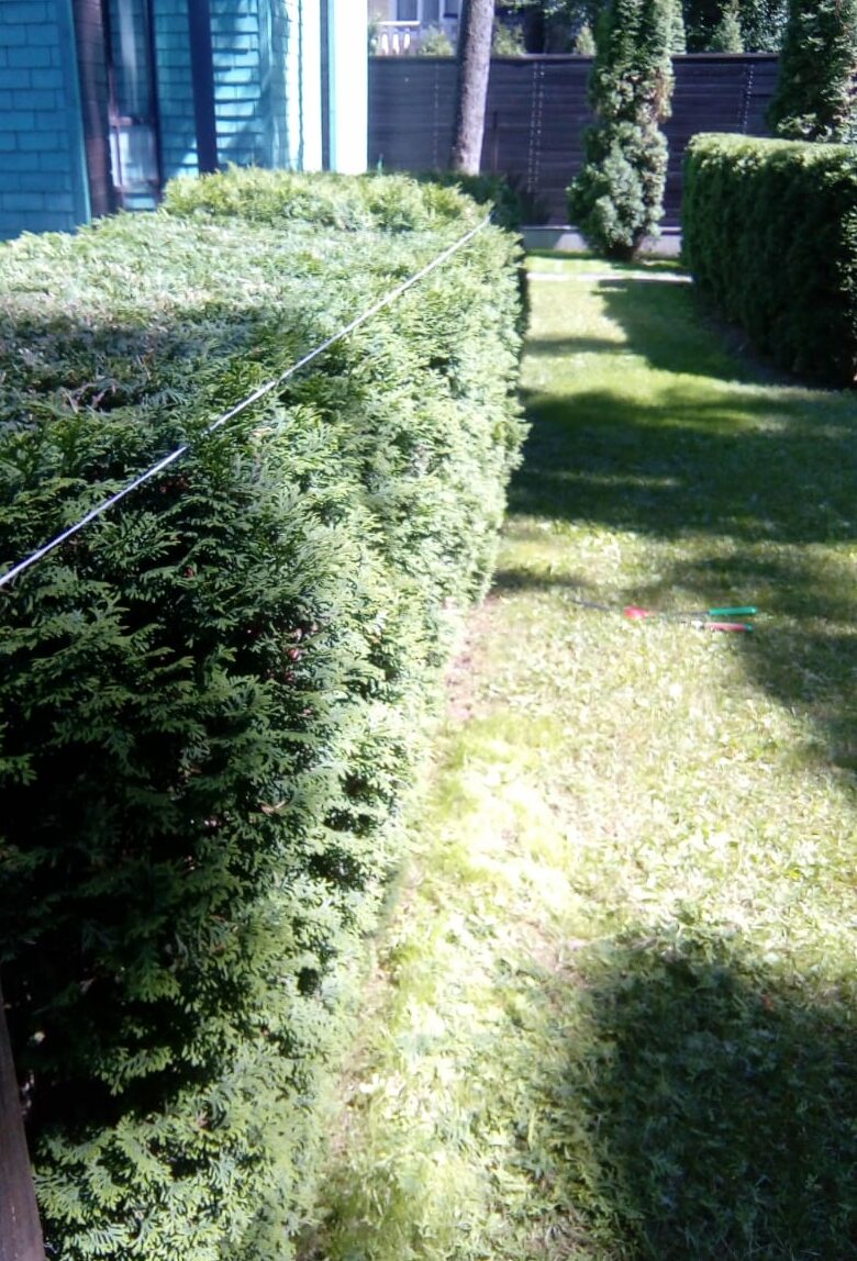 Главное достичь нужной высоты изгороди и ограничить ее глубину. Стрижку проводят один-два раза за сезон и обычно с весны до осени, соблюдая временны'е интервалы для каждой группы растений.