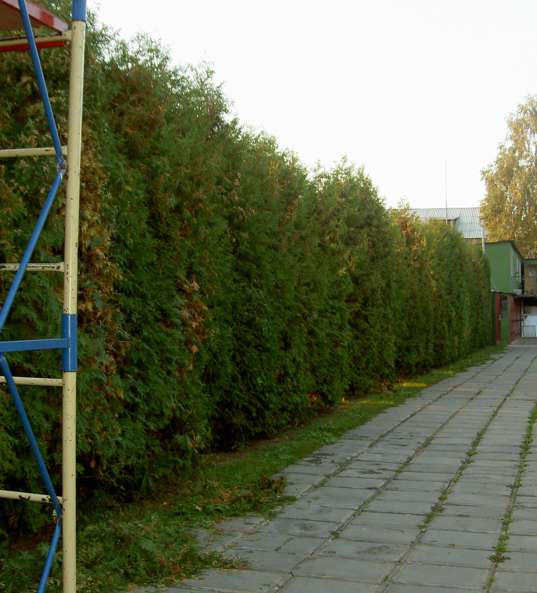 Лиственные породы надо формировать на максимальную густоту кроны. Это достигается подрезкой и удалением точек роста, что даст развитие боковых побегов и соответственно заполнение внутреннего пространства. После первых двух лет жизни живые изгороди хорошо обрастают мелкими веточками и с этого времени им можно начинать формировать общий контур.