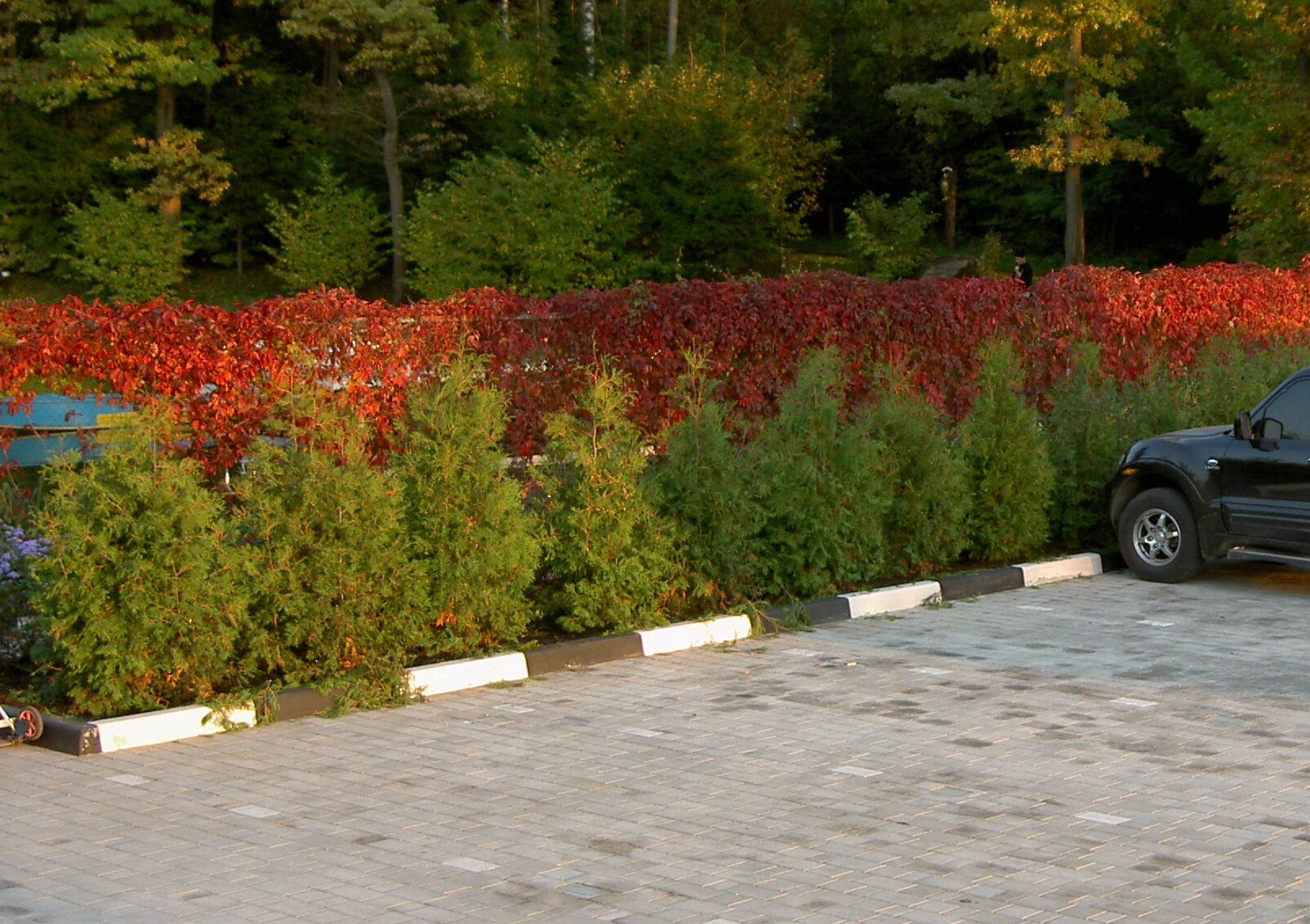 Обычный ассортимент растений для изгороди примерно такой – барбарис разных видов, от низких до средних, боярышник, чубушник (жасмин), сирень, шиповник, туя разных видов и форм, кизильник и др. В зависимости от параметров изгороди подбираем и растения в посадку. Время для посадки выбирают весной или осенью, но могут быть