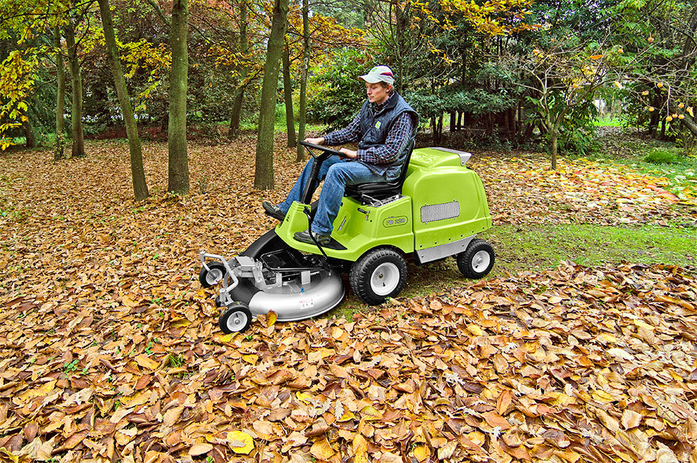 Минирайдеры имеют меньшую мощность, чем садовые тракторы. Такой машины вполне хватит, чтобы оперативно подстричь газон на небольшом и среднем участке. Осенью даже можно собрать листья с газона.