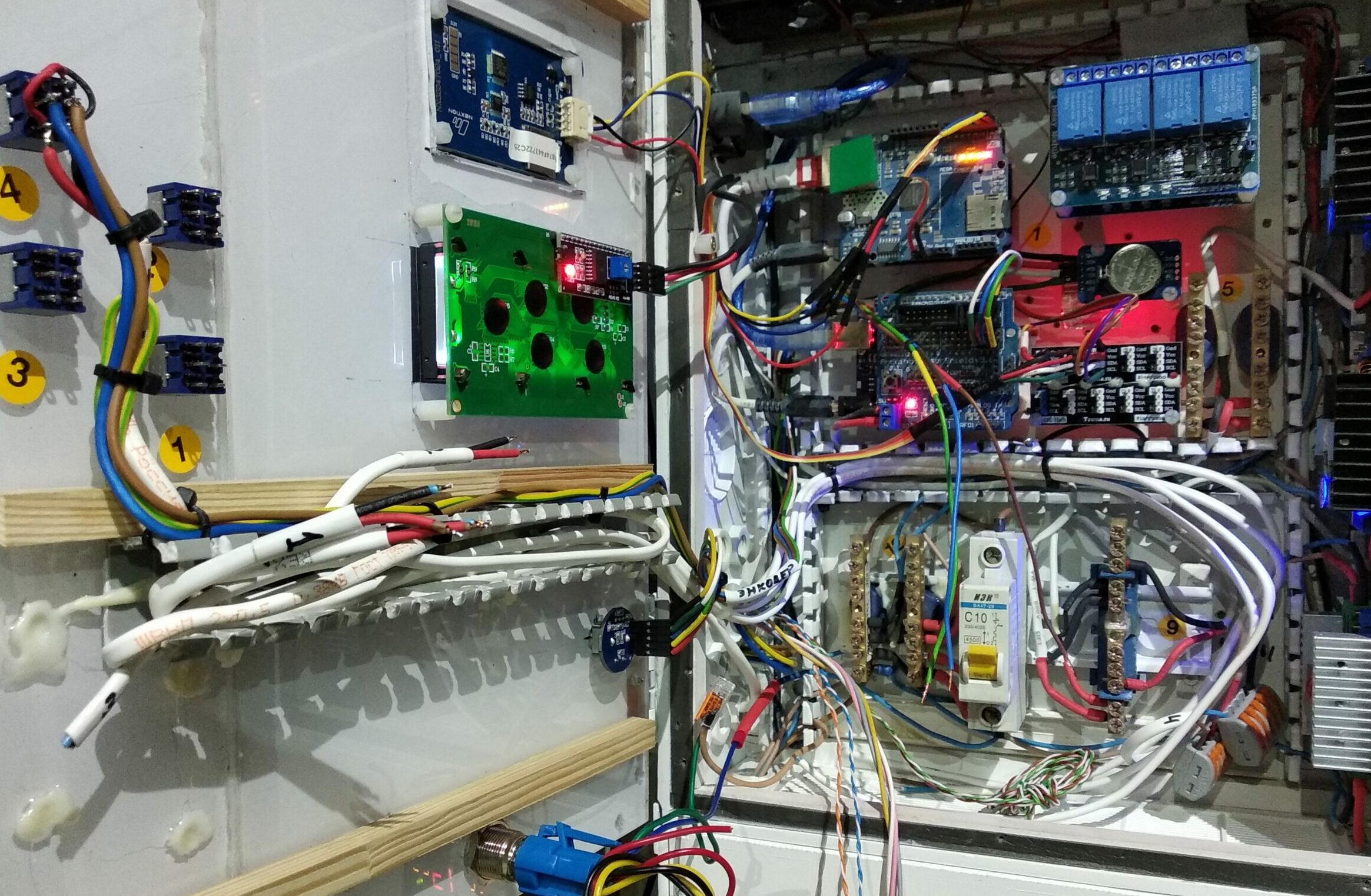 Не нашёл пока только пакетник для переключения автоматического и ручного управления. Но надеюсь к началу сезона найду и поставлю. В общем, управление температурой будет сводиться к сравнению заданных параметров с текущими изменениями.