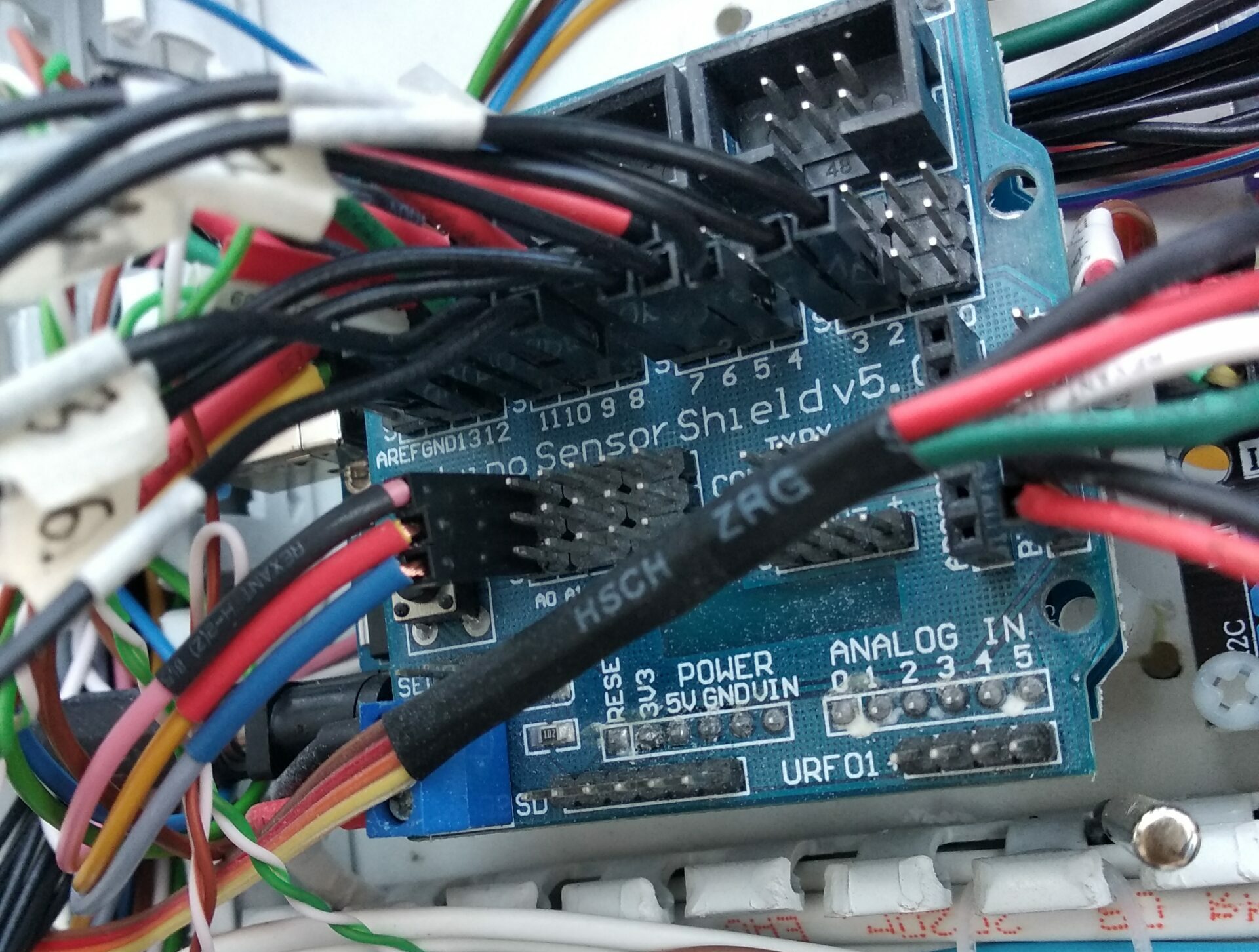 Поменял дополнительно блок питания на 12 вольт на более мощный. Полностью разделил цепи питания на контроллер и актуаторы. Поменял местами отсеки питания и логики. В ящике пока стоит плата ARDUINO UNO с шилдом для датчиков.