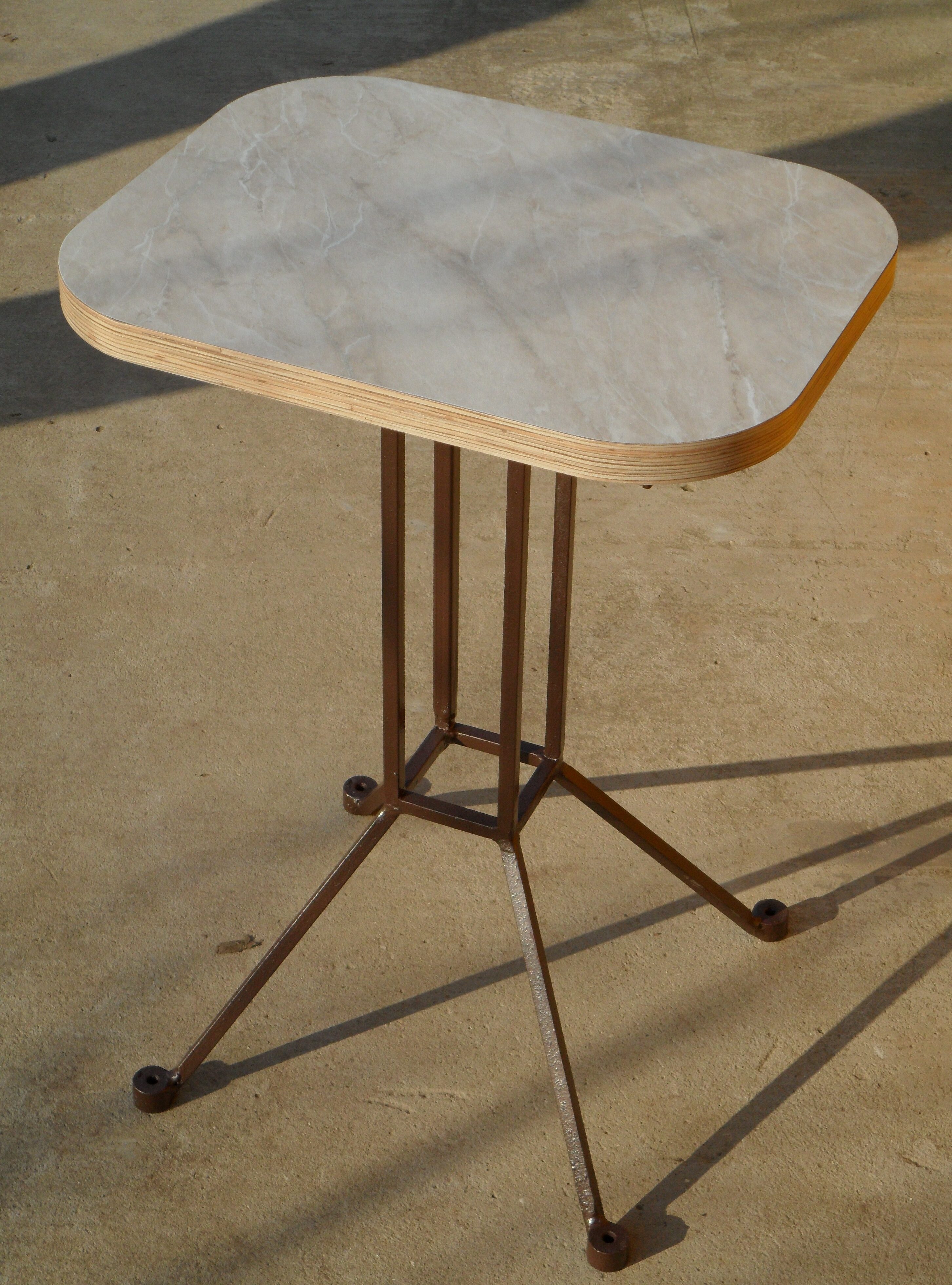 Из обрезков от кухонной столешницы сделал два столика, которые используем в хозяйстве. Каркас сварен из квадратного прутка 10 мм.