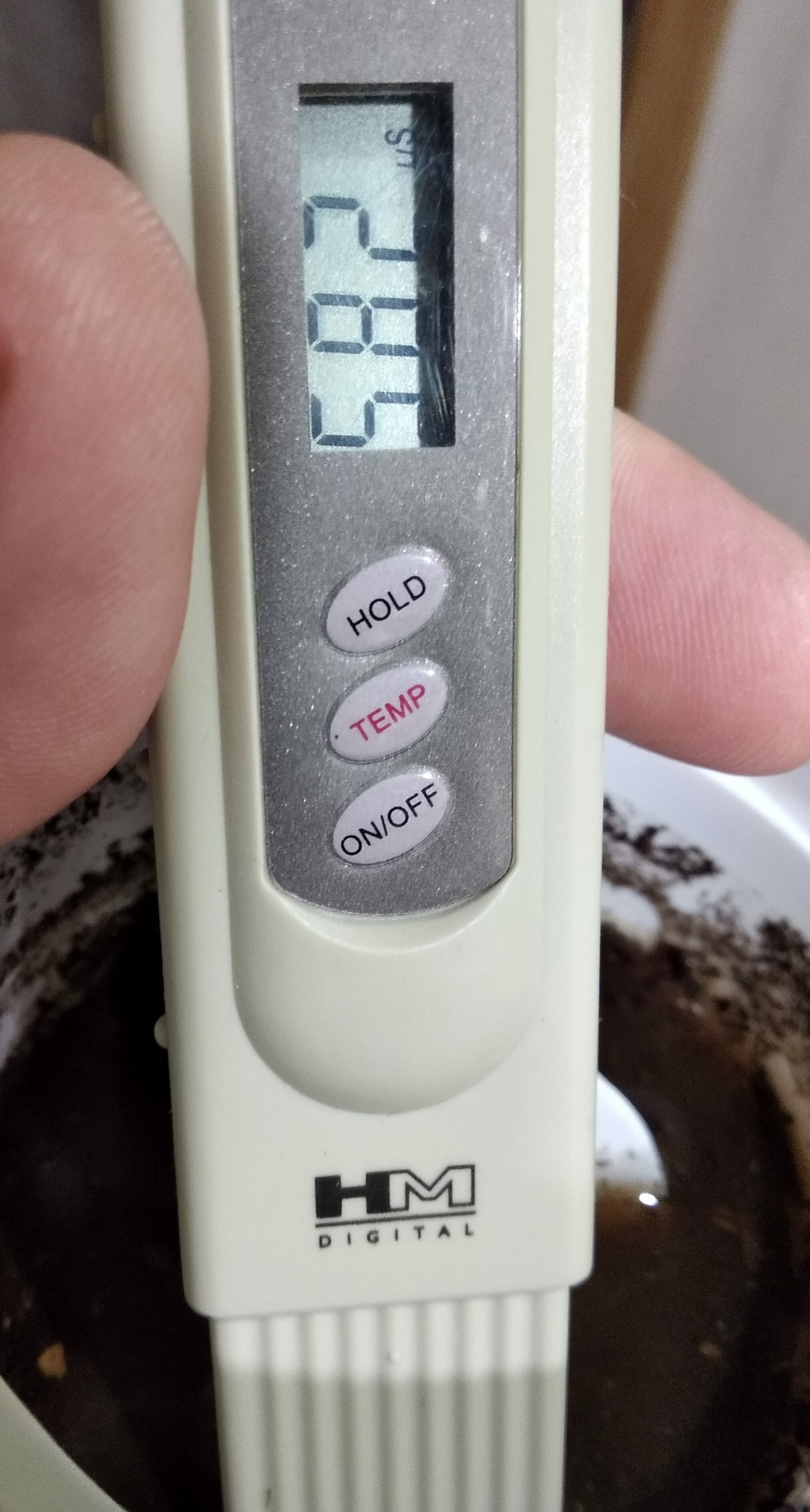 Дальше надо приготовить приборы для замера по инструкции к ним. Рядом надо иметь бумажные салфетки для промакивания лишней влаги с электродов приборов. Для замера опускаете электродную часть в болтушку и ждёте несколько секунд, до минуты, пока показания приборов не станут стабильными.