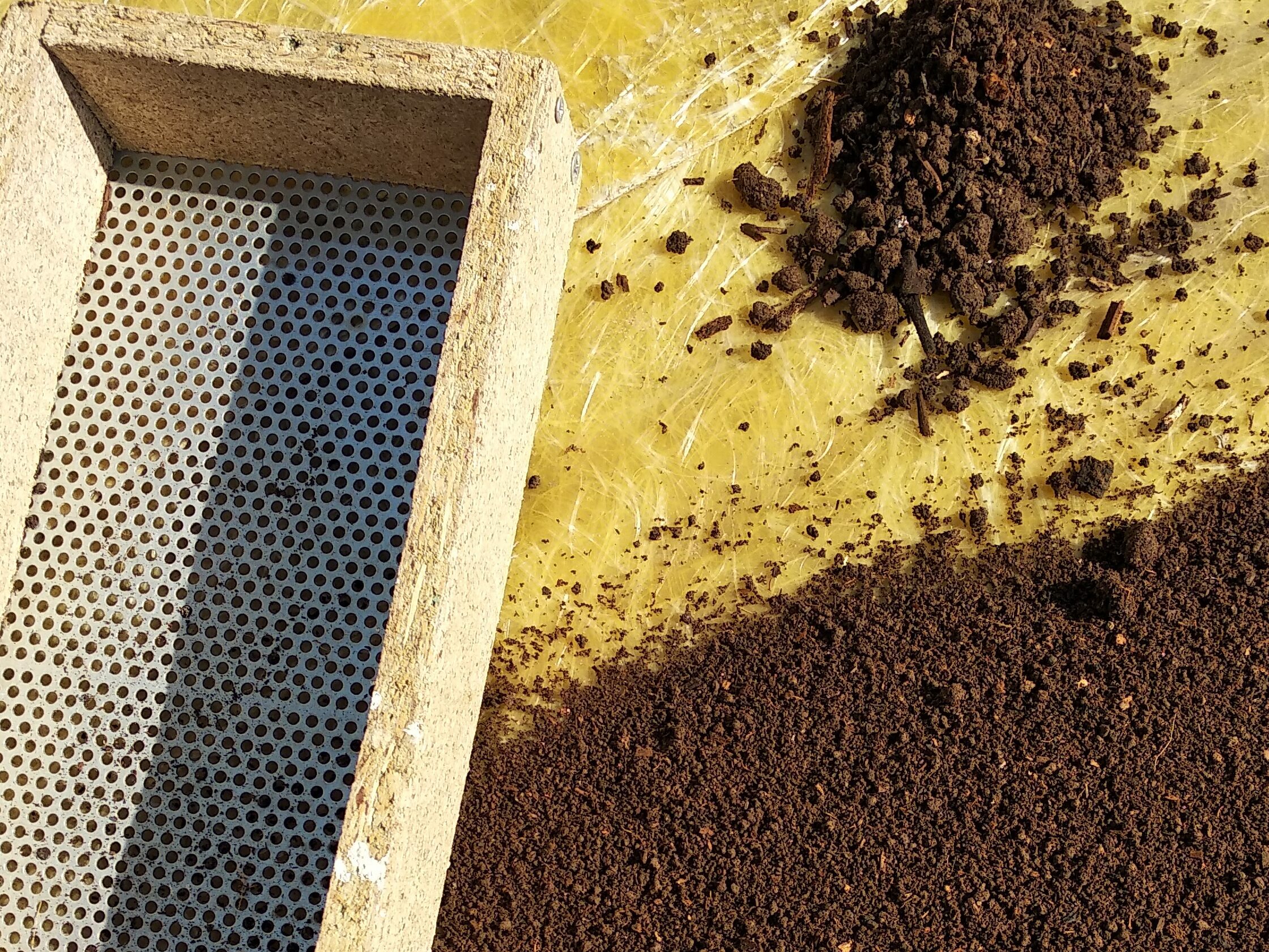 Методика проведения анализа — взять произвольный объём почвы условной влажности 60-65%. Для определения влажности надо взять в горсть почву и сжать в кулаке, после раскрытия ладони колбаска почвы не должна рассыпаться, но и лишней влаги быть не должно. Это примерно будет соответствовать нужной влажности для проведения анализа. Если есть ненужный дуршлаг или сито ( с отверстиями 2-3мм) почву надо просеять для однородности состава.