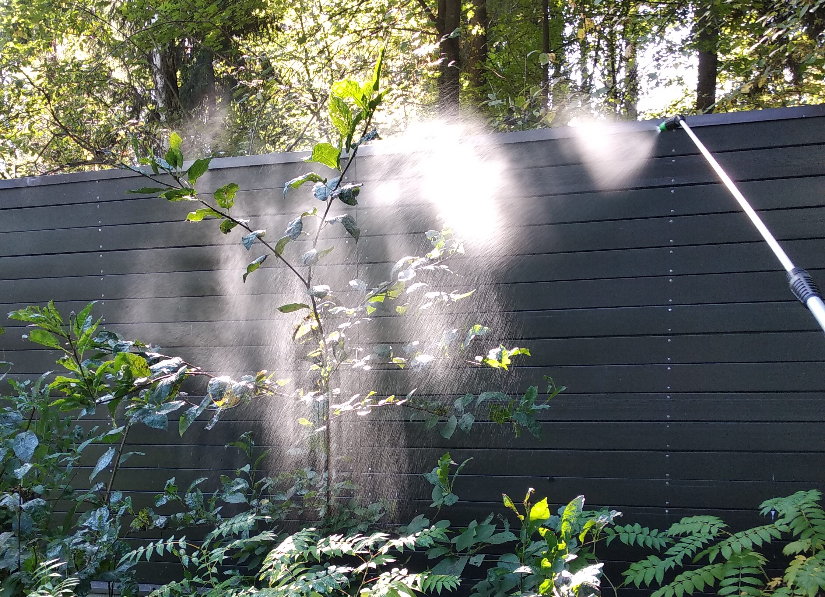 Водный раствор наливают в помповый опрыскиватель и, накачав давление насосом, опрыскивают всё растение. Необходимо добиться минимального размера капель с помощью регулировки распыляющей форсунки (форсунок).